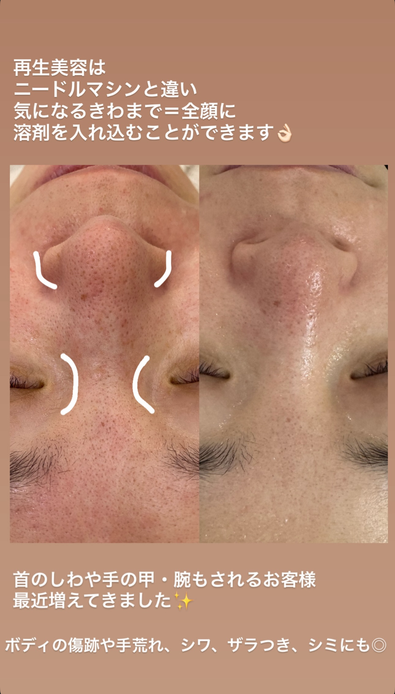 一般的なニードルマシンでは部分的な導入が多いですが、GRANVIRの再生美容は違います。