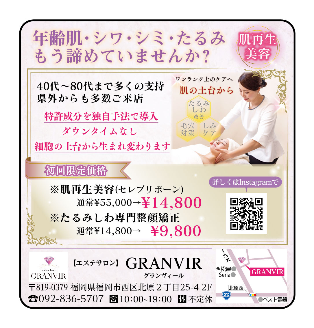 【福岡市西区 60代70代 エステ】年齢肌・シワ・シミ・たるみ相談が急増中|再生美容GRANVIR